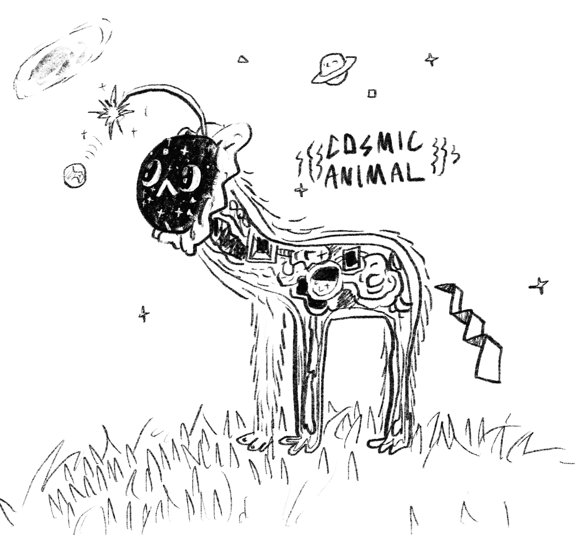 illust 量子原犬 量子原犬 [2022 |デジタル] 頭の先の惑星に似た器官を使い、星をおびき寄せて食べる。 筋金入りの長電話好き。かつて「木星の渦巻く模様と銀行預金の相関関係」にまつわる持論を、275時間ぶっ続けで語り明かしたという。